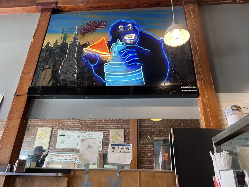 The atmosphere at Arinell Pizza is as unpretentious as its menu. The storefront, with its classic red-and-white checkered sign, has remained largely unchanged since the 1970s, evoking a sense of nostalgia and continuity. The staff, some of whom are active in the local punk and rock music scenes, contribute to the pizzeria’s unique cultural vibe, blending Berkeley’s countercultural heritage with the straightforward appeal of great pizza. This connection to the local community and music scene adds an extra layer of character to the dining experience.