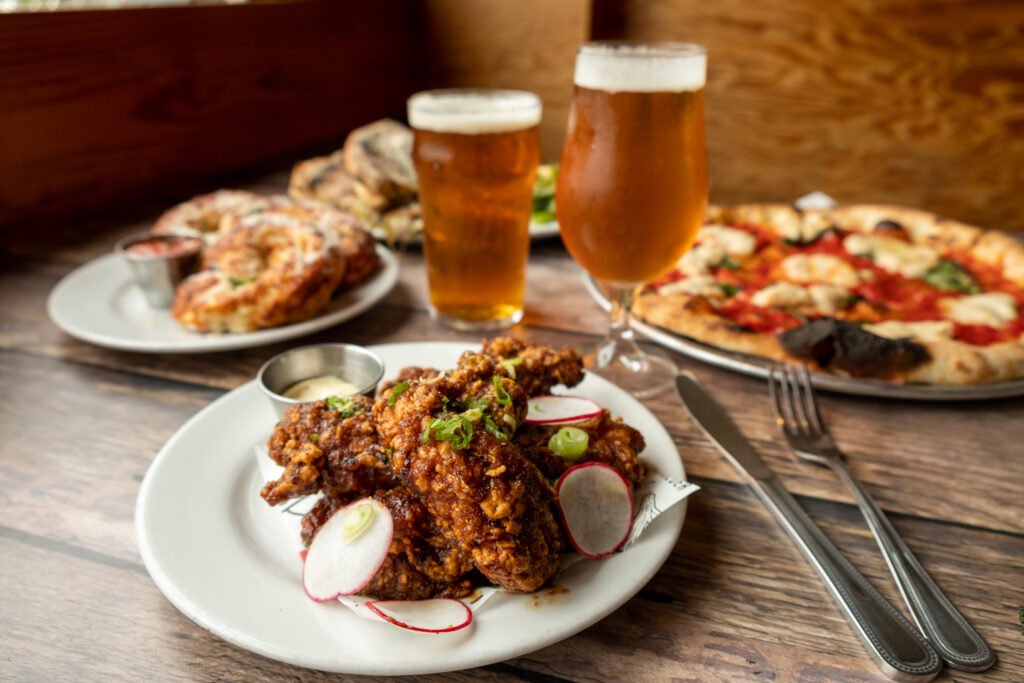Pitfire Pizza’s commitment to quality is evident in its use of fermented sourdough for its specialty wood-fired pizzas, which results in a distinctive texture and flavor profile. The pizzas feature a crunchy exterior with a chewy interior, offering a satisfying bite that highlights the artisanal preparation methods. The menu also caters to diverse dietary preferences, including gluten-free options, ensuring that a wide range of customers can enjoy the offerings. Additionally, the restaurant provides shareable plates, wings, and salads, making it an ideal spot for groups and families to share a variety of dishes[1].
